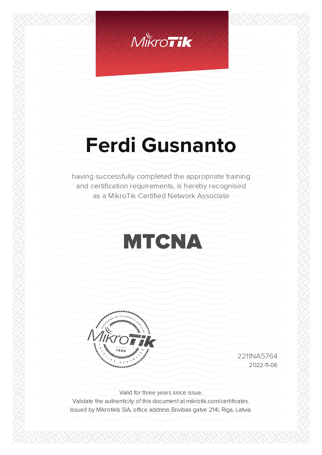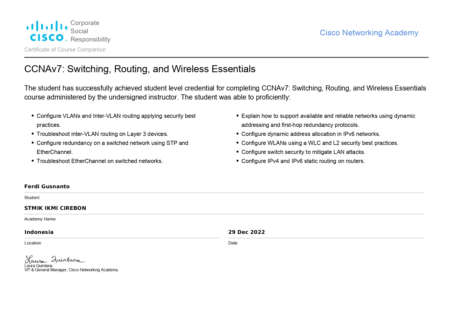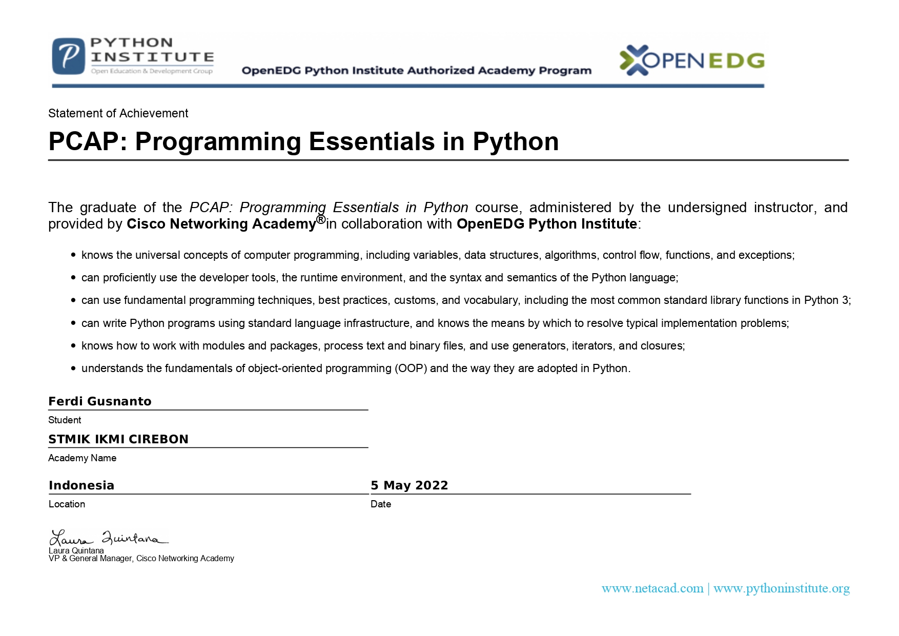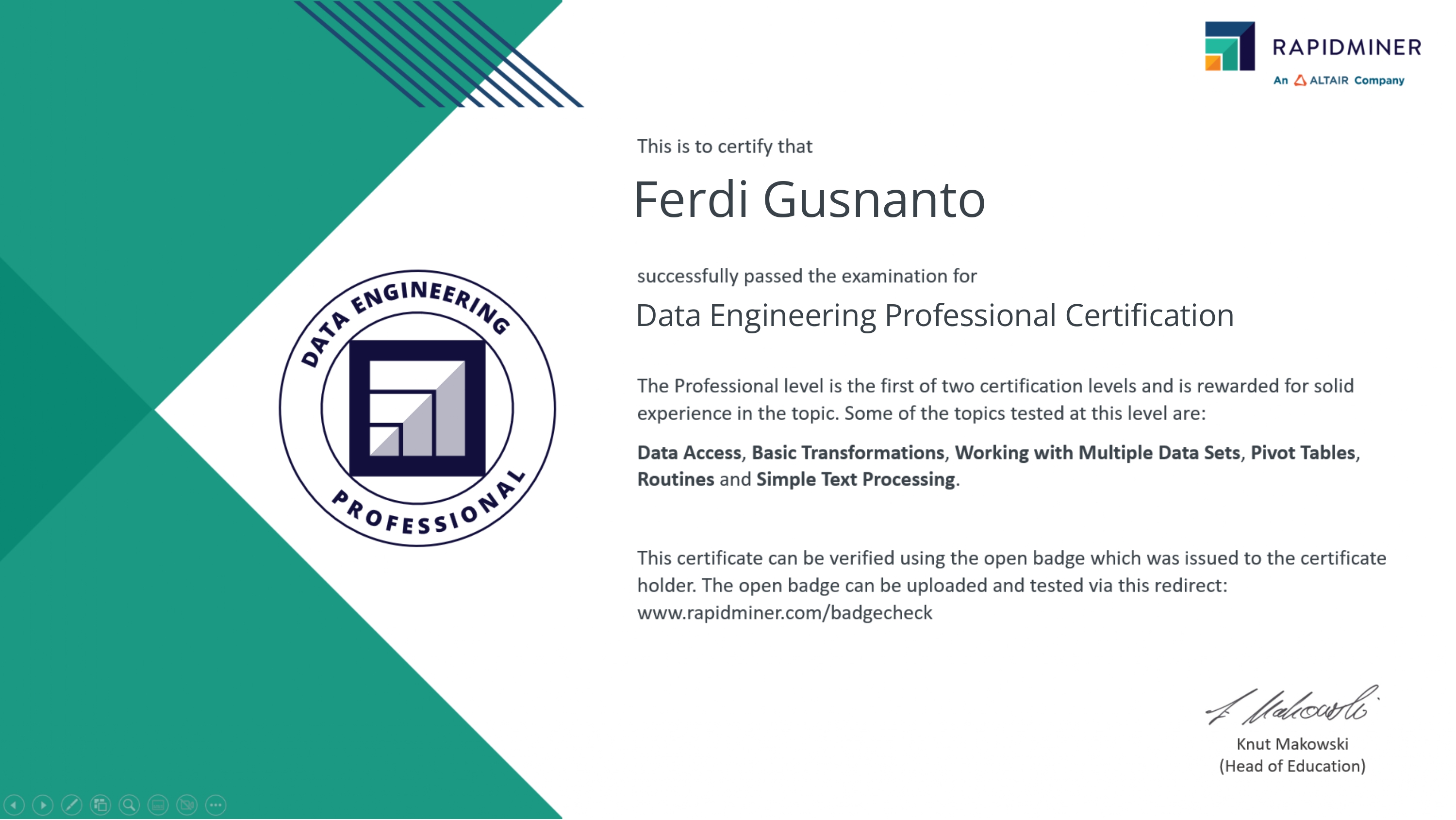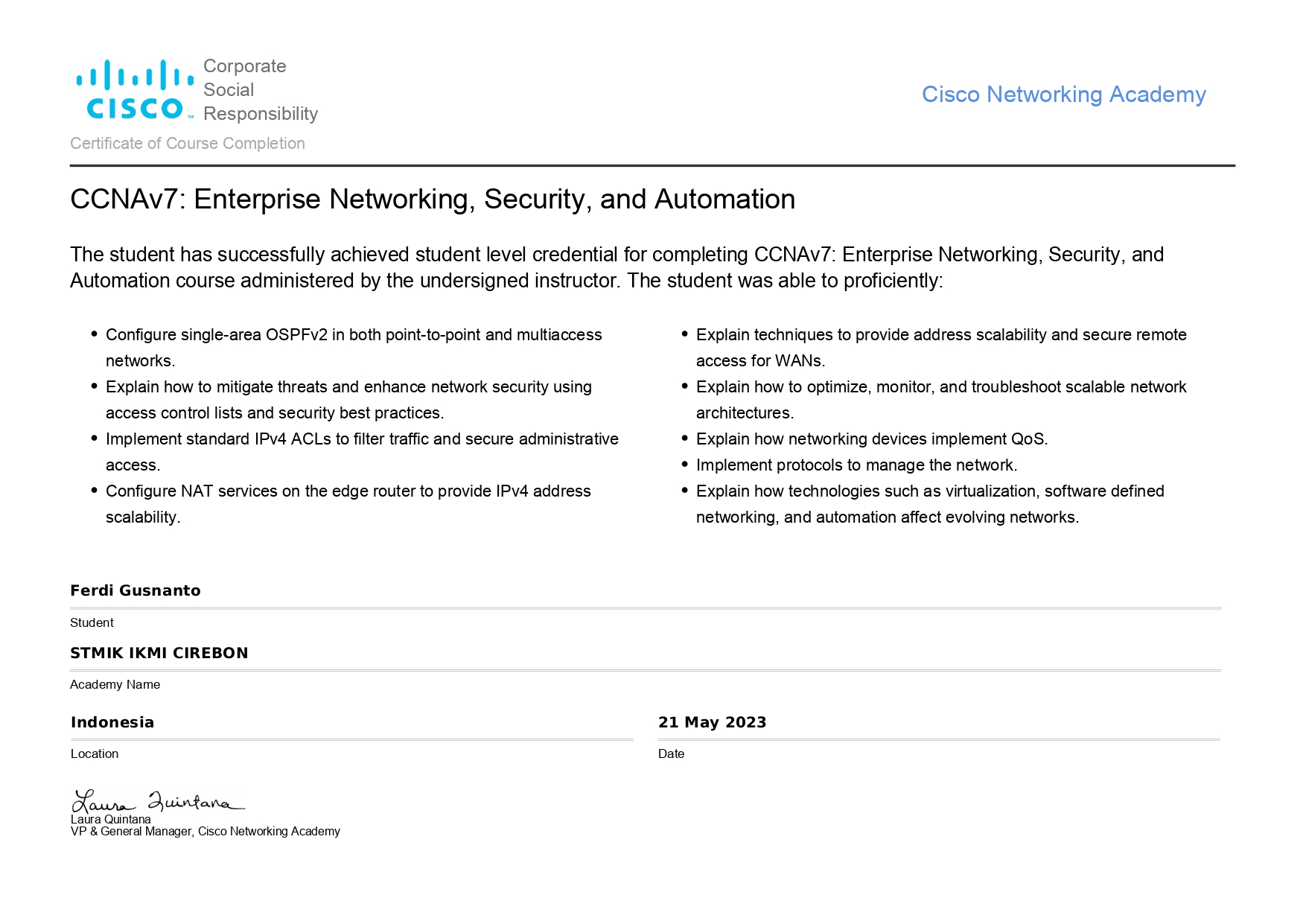 - Certificate