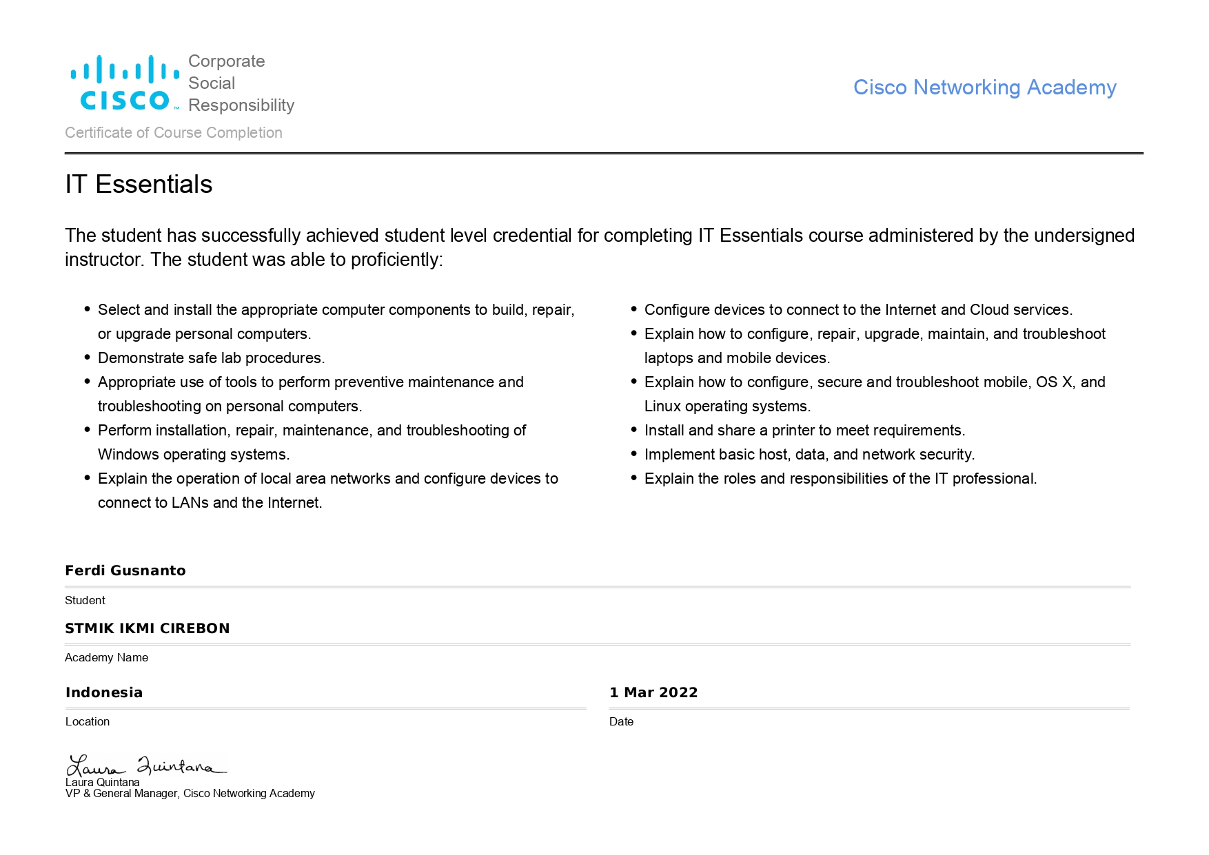Menginstalasi perangkat komputer personal dan menginstal sistem operasi dan aplikasi, menginstalasi perangkat jaringan berbasis lokal (LAN) dan menginstalasi perangkat jaringan berbasis luas (WAN)